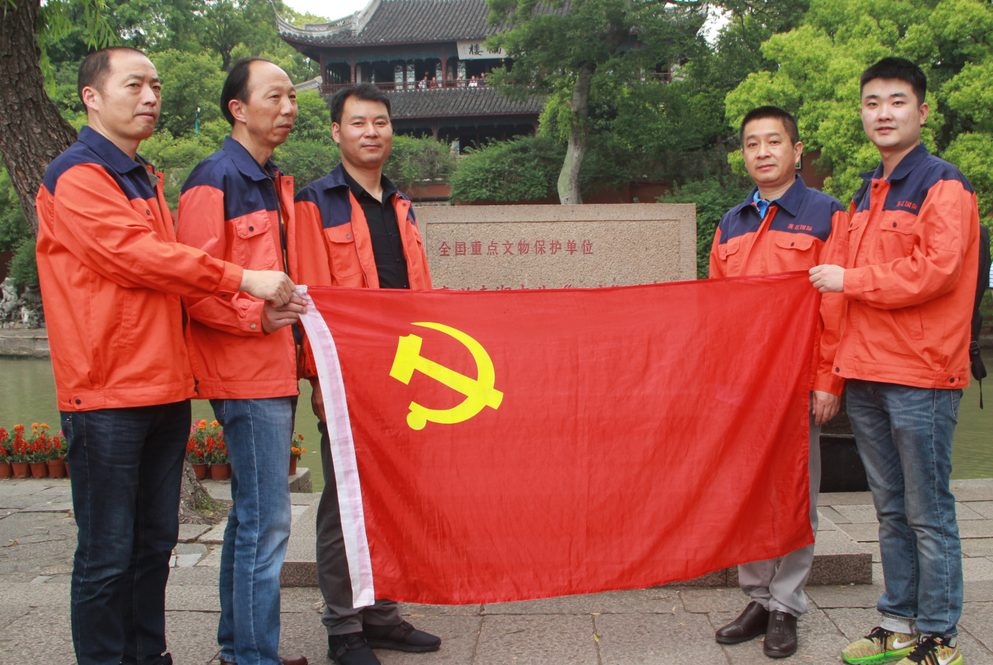 上海莲花党支部书记吕井华率领党支部成员参观革命根据地嘉兴南湖,学习革命精神。