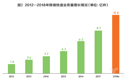 对外开放度稳步优化。受跨境寄递能力提升与跨境电商发展的影响,跨境快递业务继续保持高速增长态势。预计2018年跨境快递业务量将超过10亿件,达11.3亿件,同比增长36.6%,比行业整体增速高10个百分点以上。11月跨境快递业务量突破1亿件大关,快递助力实现“买全球、卖全球”的同时带动自身业务增长。